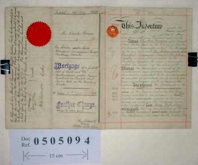 | Paper : 8 sheets 28cm x 21cm signed and stamped. Contains a second Indenture of Further Charge of 1926 written on spare pages at the back. | |||||||||||