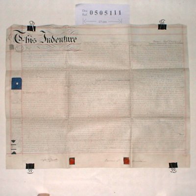 | Parchment : 1 sheet 56cm x 70cm with 4 wax seals and revenue stamps. A second Indenture of Surrender of 1879 has been written on the back. | ||||||||||||
