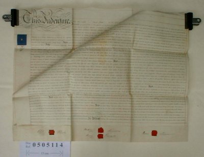 | Parchment : 2 sheets 57cm x 73cm with 5 wax seals and revenue stamps | ||||||||||||