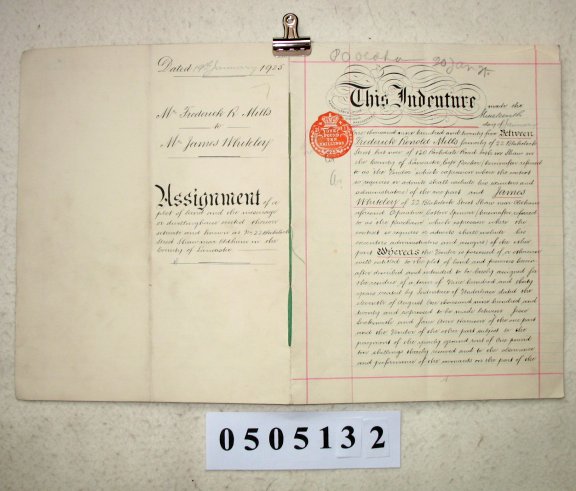 Frederick Renold MILLS of Rochdale Road, Shaw, Lancashire. Cop Packer James WHITELEY of Blakelock Street, Shaw, Lancashire. Operative Cotton Spinner SUBJECT James Whiteley is buying the residue of a 930 year lease on property in Shaw, Lancashire, from Frederick Mills for £280. The property consists of a house at 22 Blakelock Street of which James Whiteley is currently the tenant. It appears that the lease had been originally granted to Frederick Mills in 1920. | ||||||||||||