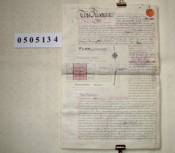 | Parchment : 2 sheets 30cm x 45cm with company seal, two other wax seals and signatures, revenue stamp and small plan of the property | ||||||||||||