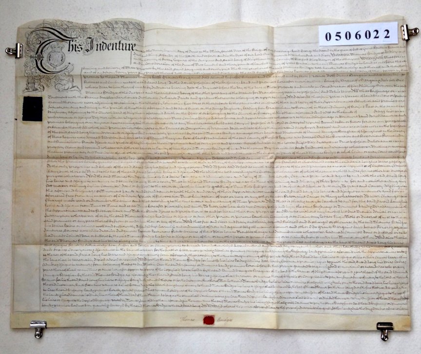 | Parchment : 1 sheet 76cm x 61cm with wax seal and signature and revenue stamps. | |||||||||||