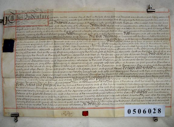 Robert Griggs of Shipdham, Norfolk. (Shopkeeper) Thomas Bringloe of Shipdham, Norfolk. (Surgeon and Apothecary) SUBJECT This is the first part of a contract of sale of a contract of sale by Lease and Release in which Robert Griggs is selling property in Shipdham, Norfolk. The property is being conveyed to Thomas Bringloe but he is acting only as a trustee, holding it for William Younge. The purchase price is £340, of which only £40 is to be paid direct to Robert Griggs. The remaining £300 represents a mortgage made by Mary Rising to Robert Griggs and which is now being taken over by William Younge. The property consists of a tenement with barns, stables, warehouse and outhouses, together with 5 acres of pasture adjoining. It lays next to the churchyard in Shipdham bounded on the North and East sides by the highway from Bradenham to Norwich. The "Release" is the second part of this contact and is FamilyChest document number 0506029. | |||||||||||