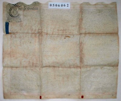 | Parchment : 1 sheet 67cm x 80cm with 2 wax seals and revenue stamps | ||||||||||||