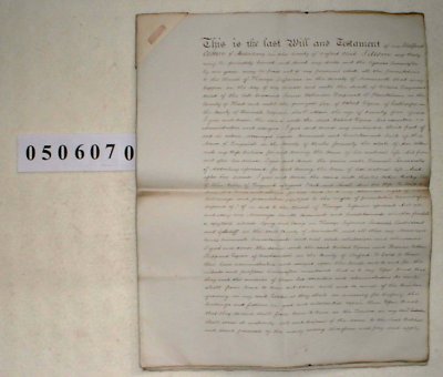 | Paper: 9 sheets and cover sheet 42cm x 34cm. This is a solicitor's copy of the will with no indication as to when the copy was made. * see below | ||||||||||||