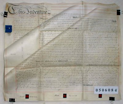 | Parchment : 3 sheets 59cm x 70cm with 3 wax seals, 2 signatures and revenue stamps. Includes a plan of the property. | ||||||||||||||
