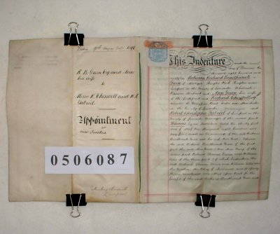 Richard Braithwaite Green of 'Abbotsgate', Huyton Park, Huyton near Liverpool, Lancashire. Wholesale Provision Merchant Ann Green, wife of Richard Green Richard Chiswall of 16 Mayfield Road, Eccles, near Manchester, Lancashire. Manager Robert Christopher Gabriel of Liverpool, Lancashire. Manager SUBJECT Appointment of new trustees to a settlement made in 1865 on the marriage of Richard and Ann Green. The summary and description of this document are being processed and will appear as soon as possible. If you wish to know details in the meantime, please contact familychest@aol.com by email and we will respond by return. | ||||||||||||