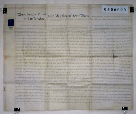 | Parchment : 1 sheet 61cm x 74cm with revenue stamp and the signature of the Steward of the Manor. | |||||||||||