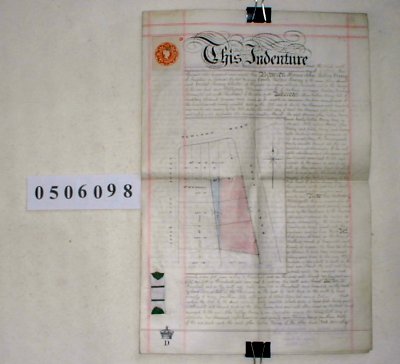| Parchment : 1 sheet + cover 30cm x 44cm 3 red wax seals and signatures, revenue stamp. Plan of property on front sheet. | |||||||||||