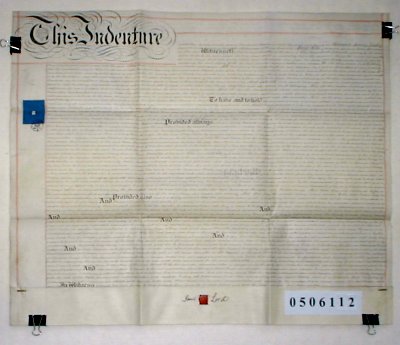 | Parchment : 1 sheet 72cm x 60cm with wax seal and revenue stamp. | ||||||||||||