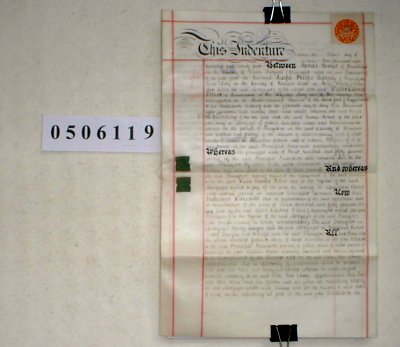 | Parchment : 1 sheet plus cover 26cm x 40cm. 2 wax seals and signatures, revenue stamps. | ||||||||||||