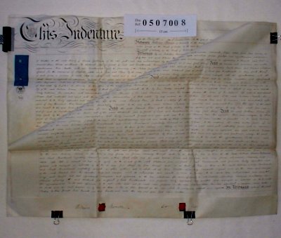 | Parchment : 2 sheets 58cm x 78cm with 2 wax seals and revenue stamps. | |||||||||||