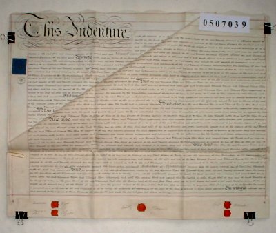 | Parchment: 2 sheets 59cm x 73cm with 5 wax seals (4 signatures) and revenue stamps. | |||||||||||||