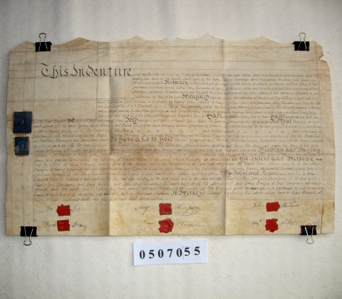 | Parchment : 1 sheet 68cm x 40cm with 6 wax seals, clear signatures and revenue stamps. | |||||||||||