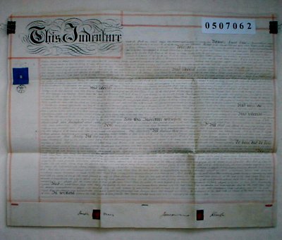 | Parchment : 1 sheet 58cm x 71cm with 2 wax seals and revenue stamp | |||||||||||