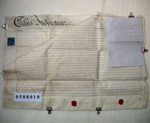 | Parchment : 3 sheets 53cm x 78cm with 2 wax seals, signatures and revenue stamps. Also a brief solicitor's summary of the contract on a separate sheet of paper. | |||||||||||