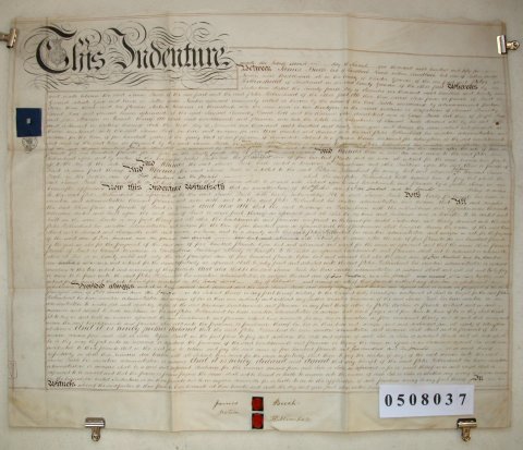 | Parchment : 1 sheet 63cm x 78 cm with 2 wax seals, 2 signatures and revenue stamps | |||||||||||||
