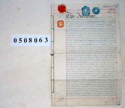 | Paper : 3 sheets typewritten 25cm x 38cm signed, sealed and stamped. 2 memoranda added at the end relating to indentures of 1921 and 1923. | |||||||||||