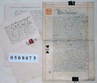 | Parchment : 1 sheet and cover 26cm x 40cm with 2 wax seals and signatures. Revenue stamps, Memorandum. | |||||||||||