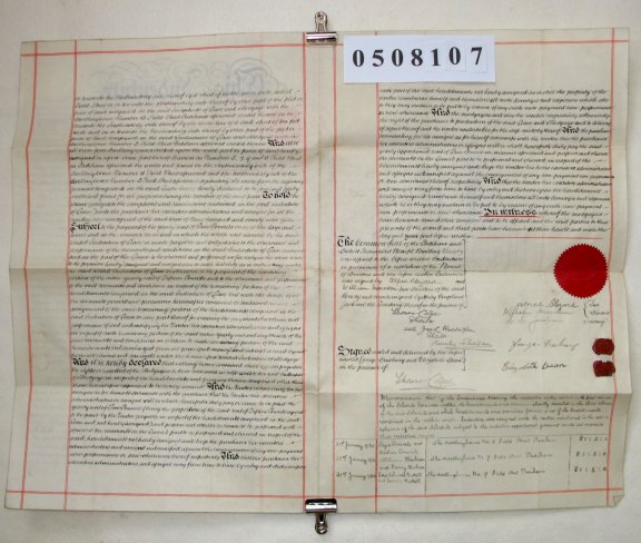 | Parchment : 2 sheets 30cm x 47cm with 2 wax seals, 2 signatures and revenue stamp | ||||||||||||