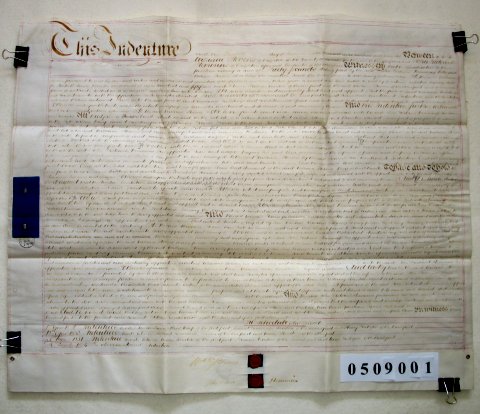 | Parchment : 1 sheet 58cm x 69cm with 2 wax seals, 2 signatures and revenue stamps. | |||||||||||||