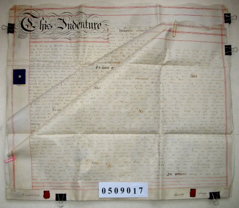 | Parchment : 3 sheets 61cm x 71cm with 2 wax seals, 2 signatures and revenue stamps | |||||||||||||