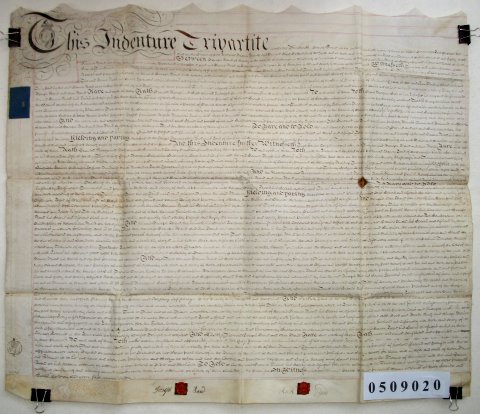| Parchment : 1 sheet 66cm x 70cm with 2 wax seals, 2 signatures and revenue stamps | |||||||||||||