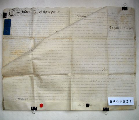 | Parchment : 2 sheets 60cm x 76cm with 2 wax seals (1 red 1 black), 1 signature and revenue stamps. | ||||||||||||