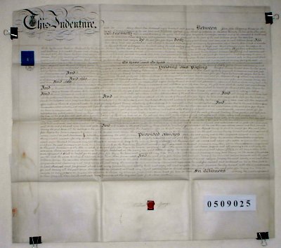 | Parchment : 1 sheet 68cm x 74cm with 1 wax seal and revenue stamp | |||||||||||