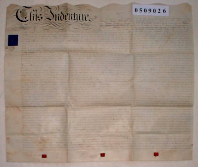 | Parchment : 1 sheet 64cm x 77cm with 3 wax seals, 2 signatures and revenue stamp | |||||||||||