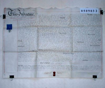 | Parchment : 1 sheet 57cm x 78cm with 2 wax seals, 2 signatures and revenue stamp | |||||||||||