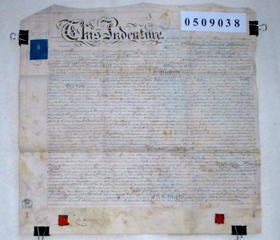 | Parchment : 1 sheet 50cm x 52cm with 2 wax seals, 2 signatures and a revenue stamp | |||||||||||||