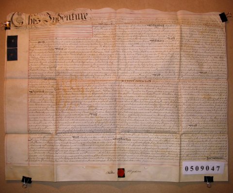 | Parchment : 1 sheet 62cm x 80cm with 1 wax seal, signature and revenue stamp. | |||||||||||||