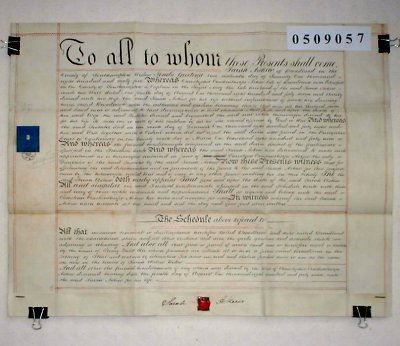 | Parchment : 1 sheet 52cm x 66cm with 1 wax seal and revenue stamp | ||||||||||||
