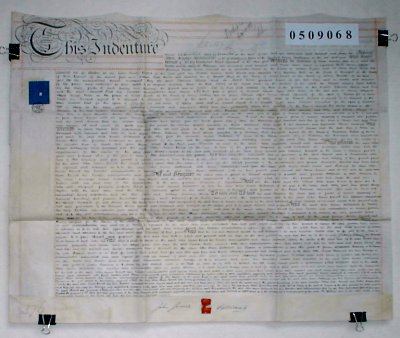 | Parchment : 1 sheet 62cm x 75cm with 1 wax seal and revenue stamp | ||||||||||||