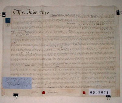 | Parchment : 1 sheet 64cm x 80cm with 2 wax seals, 1 signature and duty stamps | ||||||||||||