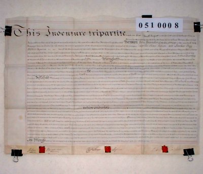| Parchment : 1 sheet 45cm x 61cm with 3 wax seals and 3 signatures but no revenue stamp | ||||||||||||