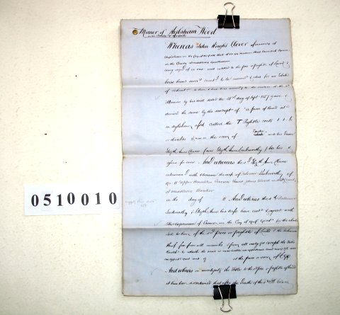 John Wright CLOVER (deceased) formerly of Aylsham, Norfolk, then of 44 Mortimer Street, Cavendish Square, Middlesex. Gentleman. Elizabeth Anne CLOVER now the wife of Falconer LARKWORTHY of 11 Upper Hamilton Terrace, Saint Johns Wood, Middlesex. Banker. Thomas COPEMAN of Cromer, Norfolk. Gentleman. SUBJECT This is a draft of a record made by the Manor of Aylsham Wood, Norfolk; relating to a piece of land called the ' T Pightle ' containing about 1 acre. This is Copyhold land of the Manor and is being sold by Elizabeth and Falconer Larkworthy to Thomas Copeman for £90. We are told that the property had been left to Elizabeth Anne Clover by the Will of John Wright on his death in 1857. There is a long discussion of the exact boundaries of this plot and its relation to other lands left to John Clover's sons - ie John Peterson Clover and Joseph Thomas Clover, Note that Thomas Copeman appears to be Lord of the Manor of Aylsham Wood. | |||||||||||