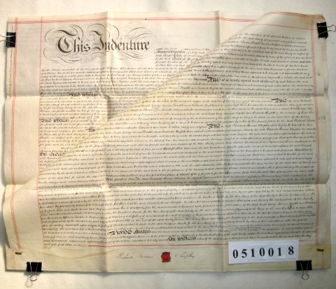 | Parchment : 2 sheets 55cm x 69cm with 1 wax seal, signature and revenue stamps. | ||||||||||||