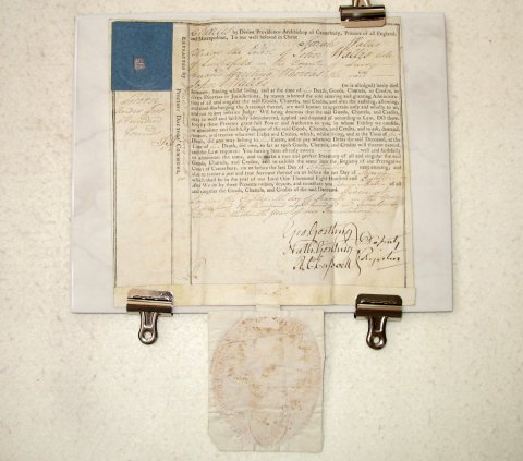 | Parchment : 19cm x 19cm with revenue stamp and pendant seal. | ||||||||||||