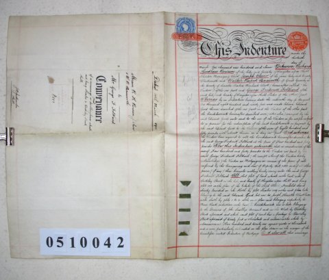 | Parchment : 2 sheets 26cm x 41cm with 4 wax seals, 4 signatures and revenue stamps. | |||||||||||