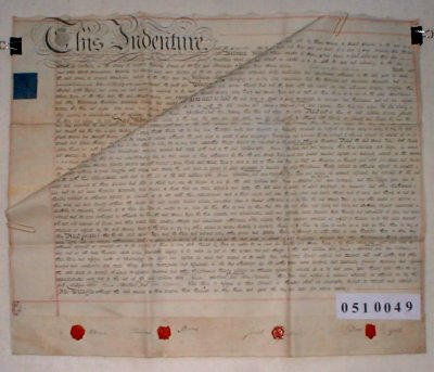| Parchment : 2 sheets 60cm x 73cm with 4 wax seals 4 signatures and revenue stamps | |||||||||||