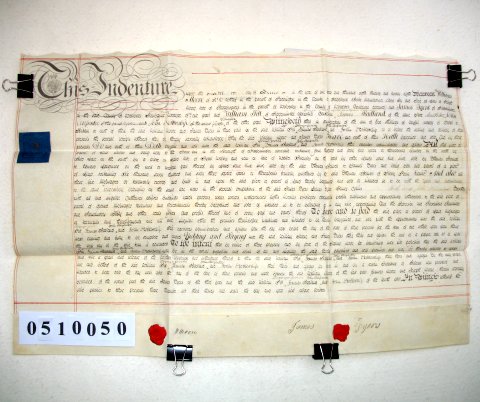 | Parchment : 1 sheet 41cm x 61cm with 2 wax seals, 2 signatures and revenue stamp | |||||||||||