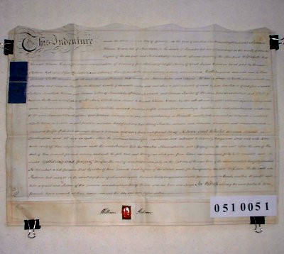 | Parchment : 1 sheet 43cm x 60cm with 1 wax seal, signature and revenue stamp | ||||||||||||
