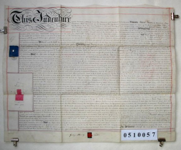 | Parchment : 1 sheet 56cm x 70cm with 1 wax seal, 1 signature, revenue stamp and small plan of the property. | |||||||||||