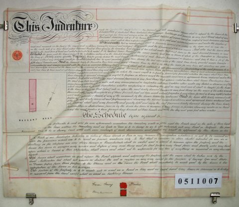 | Parchment : 2 sheets 72cm x 58cm with 2 red wax seals, 2 signatures and revenue stamps. Small plan of the property. | ||||||||||||||