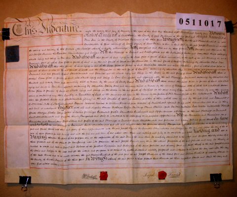 | Parchment : 1 sheet 47cm x 64cm with 2 wax seals, 2 signatures and revenue stamp | |||||||||||