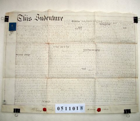 | Parchment : 1 sheet 53cm x 70cm with 2 wax seals, 2 signatures and revenue stamp. | |||||||||||||