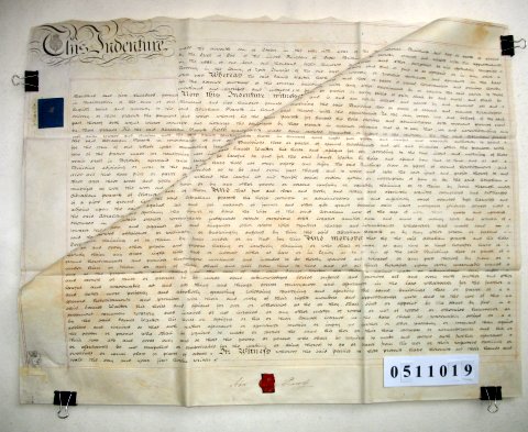 | Parchment : 2 sheets 60cm x 76cm with 1 wax seal, 12 signature and revenue stamp. | |||||||||||