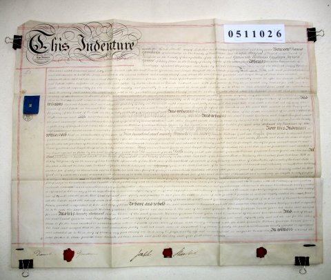| Parchment : 1 sheet 59cm x 72cm with 3 wax seals, 2 signatures, and revenue stamp | ||||||||||||||